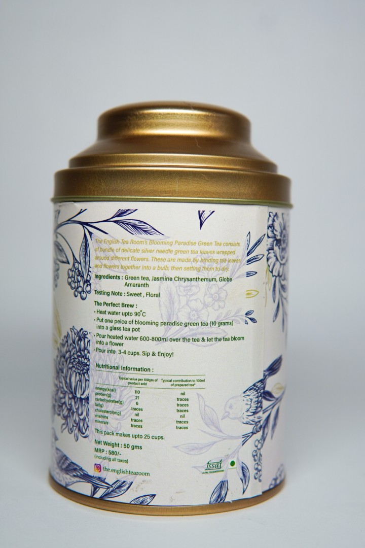 infused with jasmine chrysanthemum and globe amaranth flower petals.
