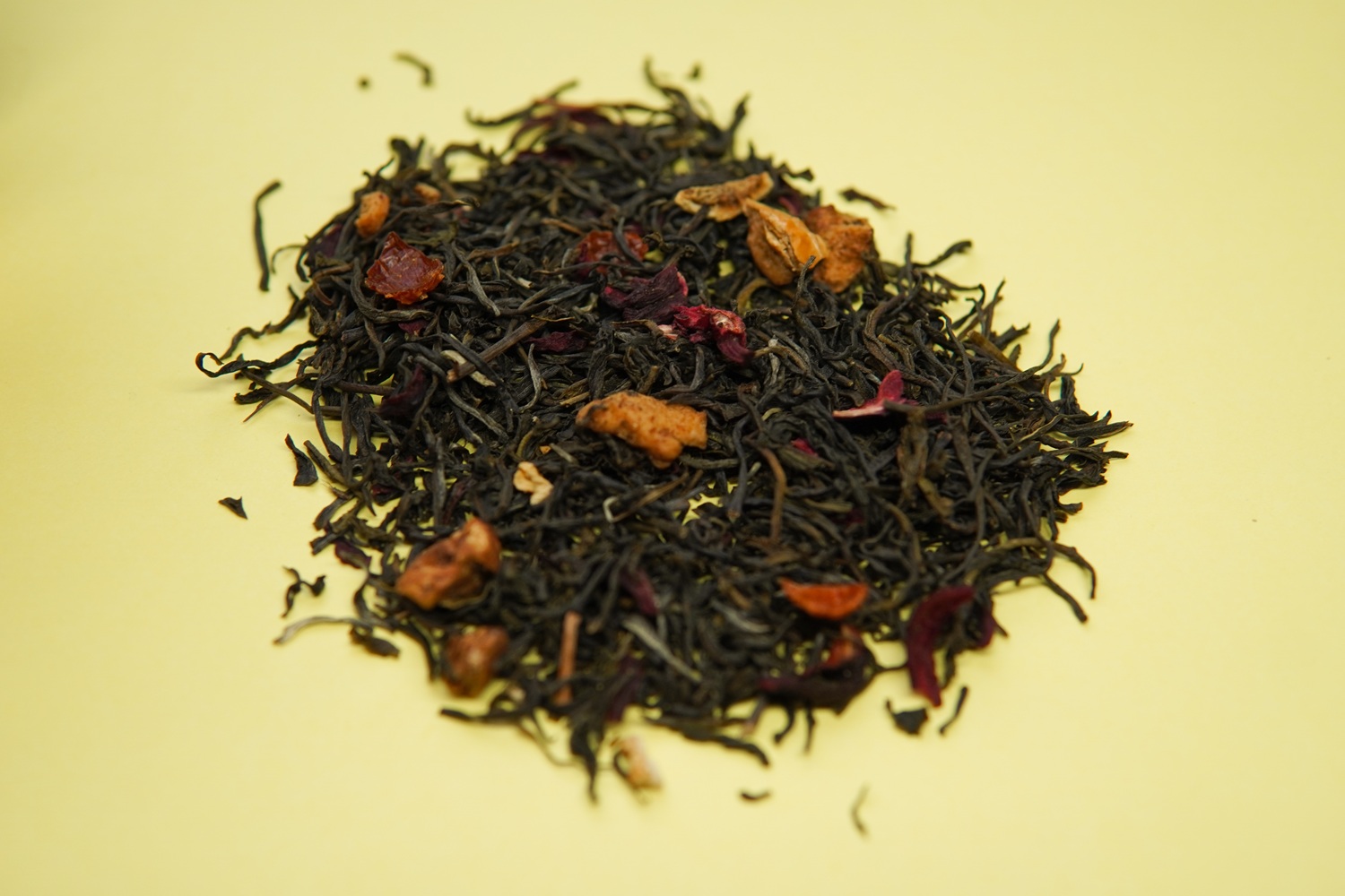 Long leaf green tea, rose hips, lemon peels, hibiscus flowers,